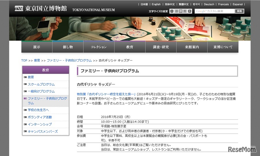 【夏休み2016】東京国立博物館キッズデー、未就学児やベビーカーも歓迎 2枚目の写真・画像