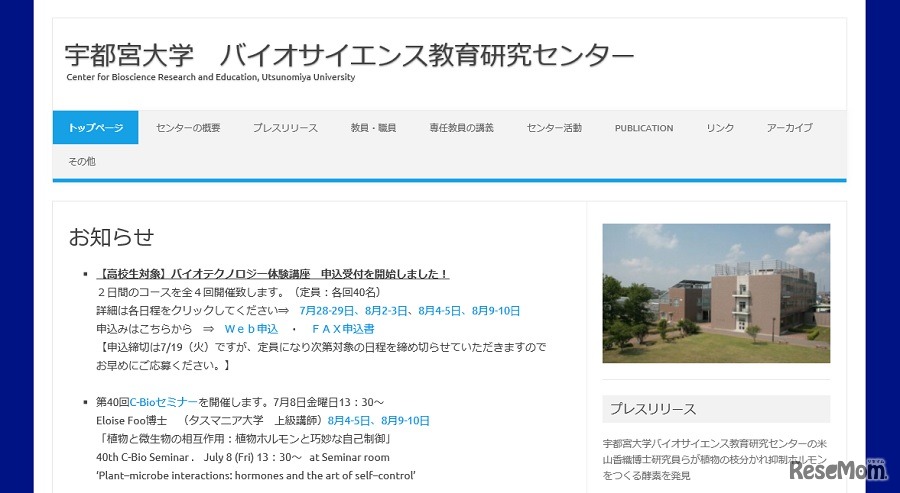 宇都宮大学バイオサイエンス教育研究センターでは、高校生と高校教員を対象とした「バイオテクノロジー体験講座」を開催する。参加費は無料。FAXもしくはWebサイトより申込みを受け付けている。締切りは7月19日必着。