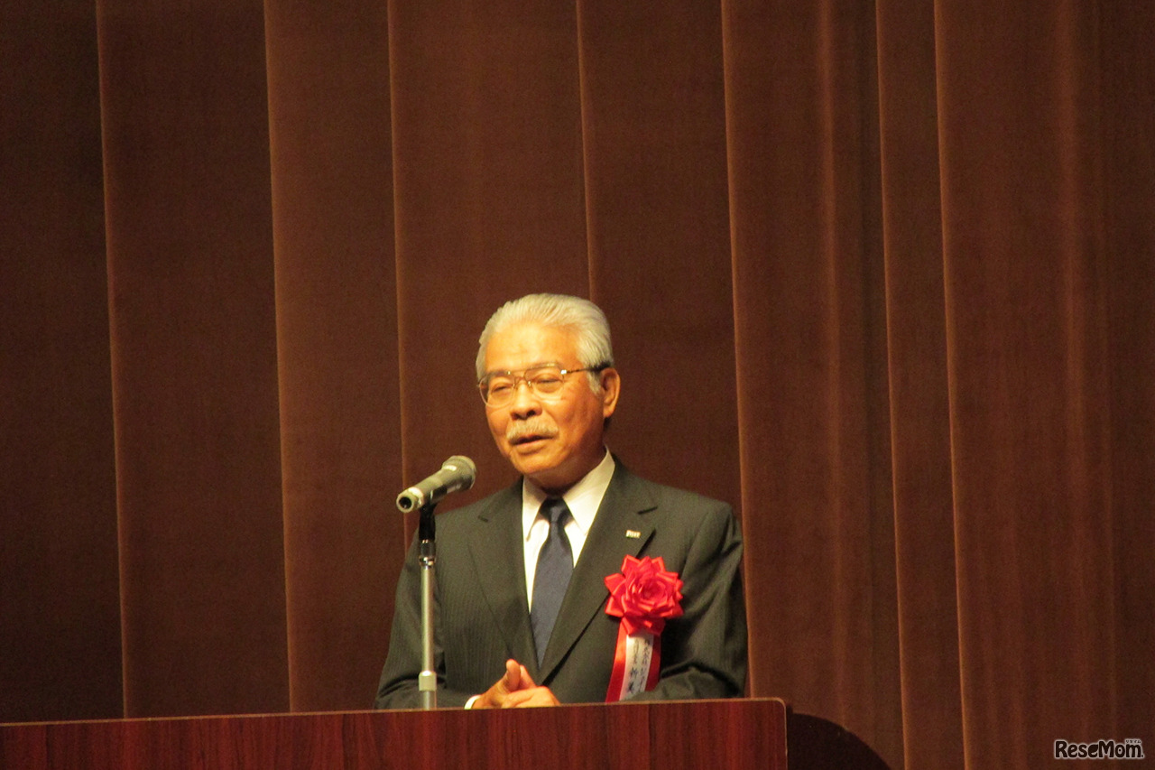 激励の言葉を送るジェイテクト取締役会長の新美篤志氏 撮影:佐久間武