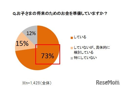 子どもの将来のために「貯蓄している」という母親が7割を超えることが6月10日、博報堂こそだて家族研究所の調査結果から明らかになった。貯蓄の目的は「学費」がダントツで多く、妊娠中や乳児期のかなり早い段階から貯蓄を始めている人が多数を占めた。