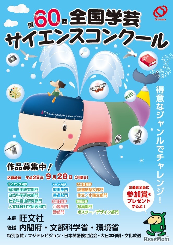 教育出版の旺文社は、「第60回全国学芸サイエンスコンクール(通称:学コン)」の作品募集を6月14日より開始した。募集対象は、海外の日本人学校在籍者を含む全国の小・中・高校生。締切りは9月28日消印有効。