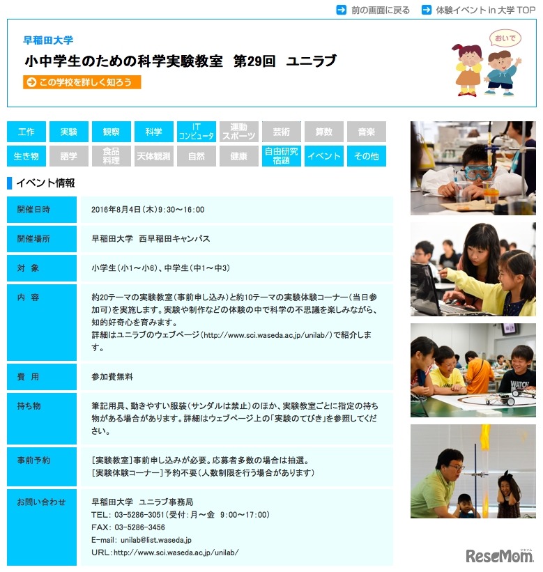 【夏休み2016】168大学のイベント網羅、子ども向け「体験イベントin大学」 4枚目の写真・画像