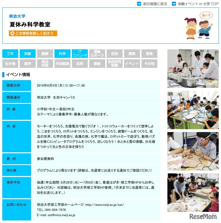 【夏休み2016】168大学のイベント網羅、子ども向け「体験イベントin大学」 8枚目の写真・画像