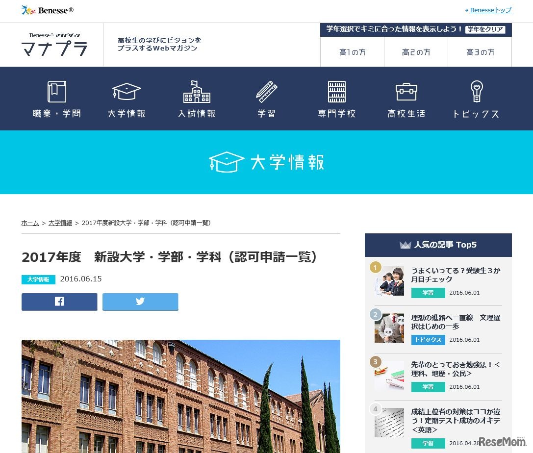【大学受験2017】マナビジョン、新設予定の大学・学部・学科一覧を公開 1枚目の写真・画像