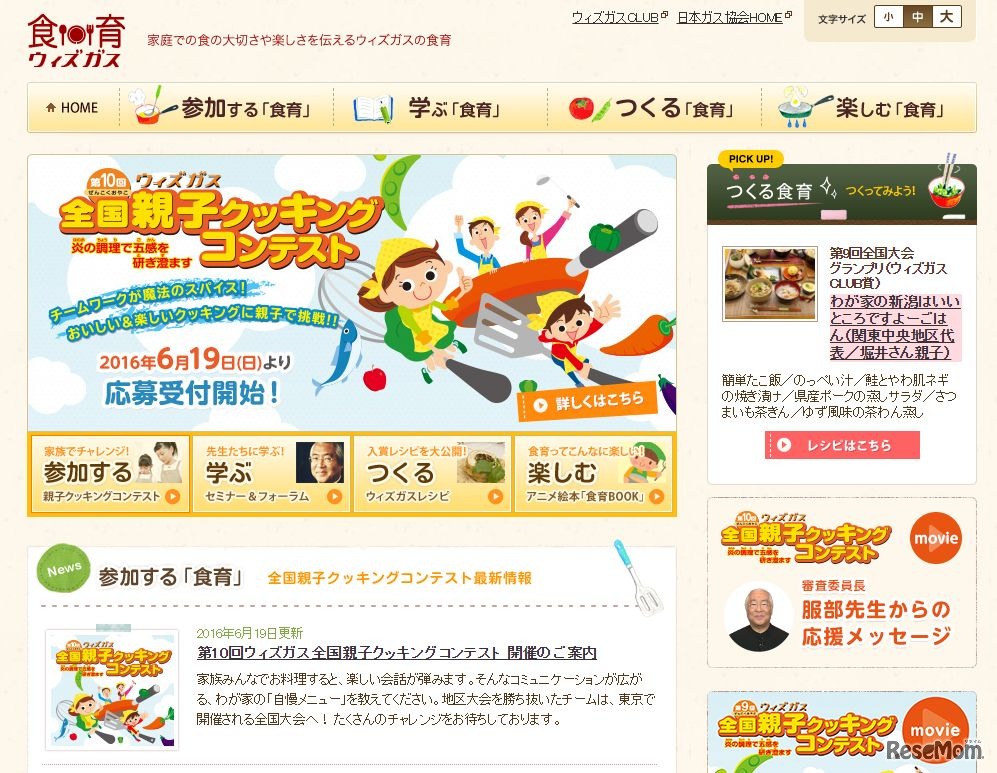 ウィズガスCLUBは、食の大切さや楽しく料理することで食育を実践する「第10回ウィズガス全国親子クッキングコンテスト」の応募受付を、「食育の日」である6月19日から開始した。参加資格は小学生とその保護者の2名1組。