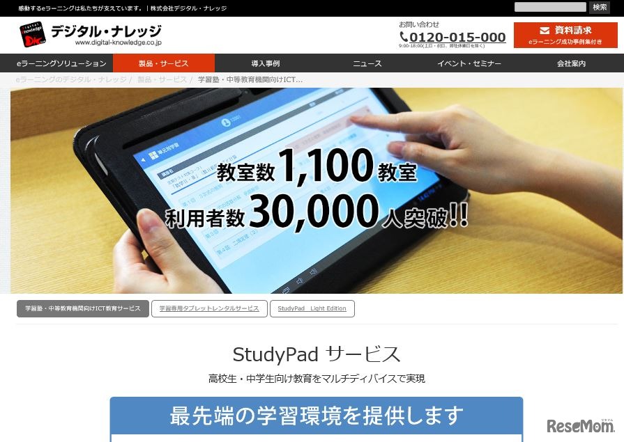 デジタル・ナレッジは7月1日、最先端の学習スタイルを実現する「StudyPadサービス」向け無料映像教材の第一弾として、「一流大への入試数学」シリーズを新規開講する。今後も無料で利用できる教材のラインナップを増やしていく。