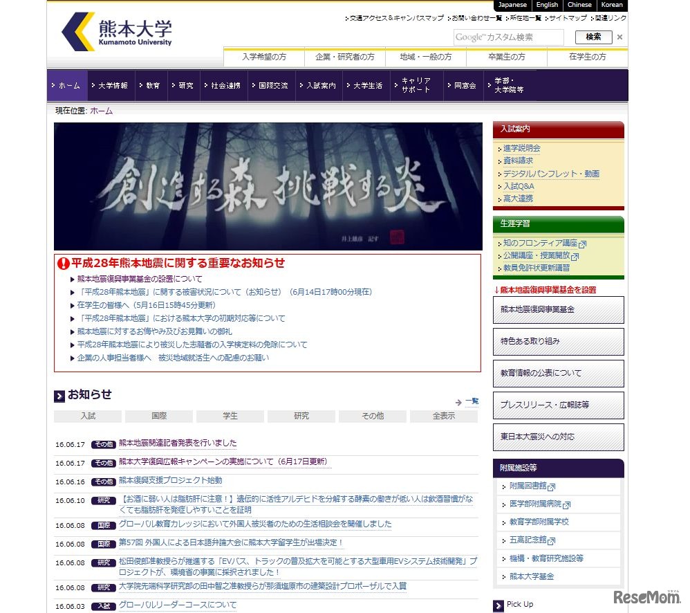 熊本地震、一橋大など独自の奨学金制度を新設 2枚目の写真・画像