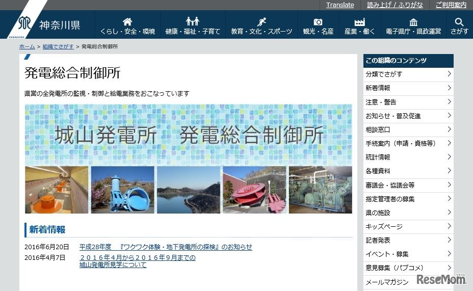 神奈川県は8月21日、夏休み親子見学会「ワクワク体験・地下発電所の探検」を開催する。対象は、小中学生と保護者のグループ。日本初の大規模な純揚水式発電所である城山発電所の施設をグループごとに見学する。