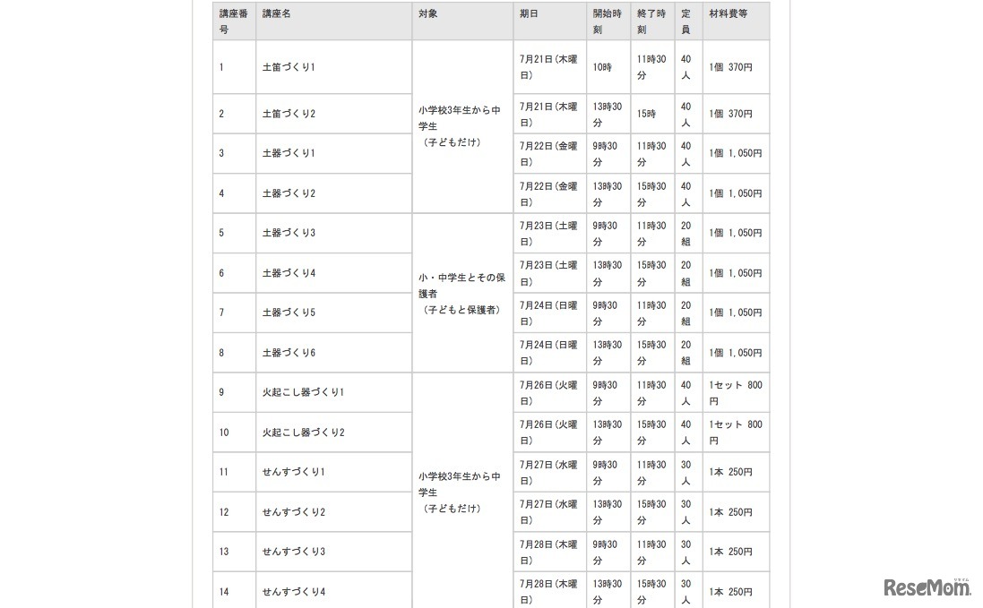 さいたま市立博物館は、7月16日から8月28日までの期間、小・中学生やその保護者をおもな対象とした「夏休み子ども博物館・体験講座」を開催する。期間中、土笛や土器、藍染めといった体験講座を30講座開催するほか、さいたま市にまつわる特別展示を行う。