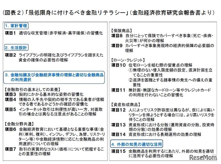 最低限身に付けるべき金融リテラシー(金融経済教育研究会報告書より)