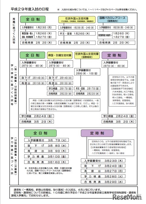 東京都教育委員会は6月22日、都立高校への入学希望者向けパンフレット「平成29年度東京都立高等学校に入学を希望する皆さんへ(日本語版)」をホームページに掲載した。平成29年度の入試日程や入試の仕組み、都立高校の種類などについて紹介している。