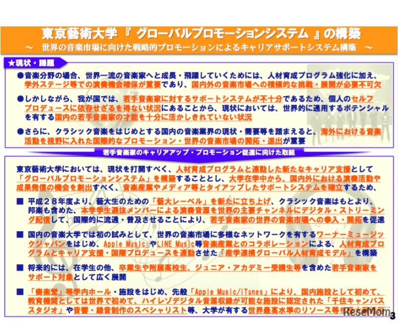 東京藝術大学は6月22日、全国の中学生を対象とした早期英才教育のための特別コース「東京藝大ジュニア・アカデミー」を平成29(2017)年度より新設すると発表した。あわせて、音楽産業界とタイアップした学生演奏音源のデジタル・ストリーミング配信システムも構築する。