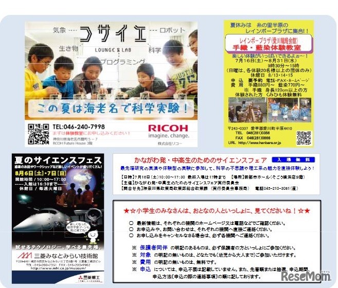 神奈川県は7月16日から8月31日まで、県内136の機関が夏休み期間中の子どもたちのために体験教室や施設見学などを展開する「かながわサイエンスサマー」を開催する。小中学生や高校生向けに科学や自然などをテーマとした多彩な催しが企画されている。