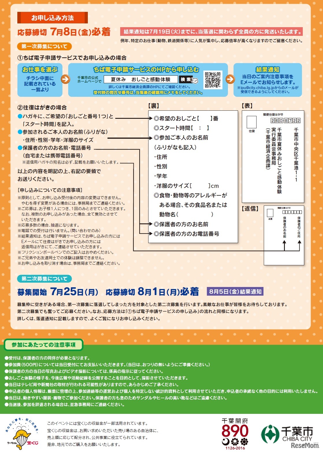 千葉市は、「千葉市夏休みおしごと感動体験ワクワクワークデー2016」を、8月25日に開催する。千葉駅周辺の百貨店をはじめ、企業や店舗132か所でお仕事体験ができる。参加対象は小学3年生から6年生、1,126名。参加費は500円。