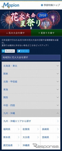 マピオンは6月23日、季節にあわせたおでかけ情報を発信する「マピオン 季節特集」にて、「花火大会・夏祭り特集2016」を公開した。