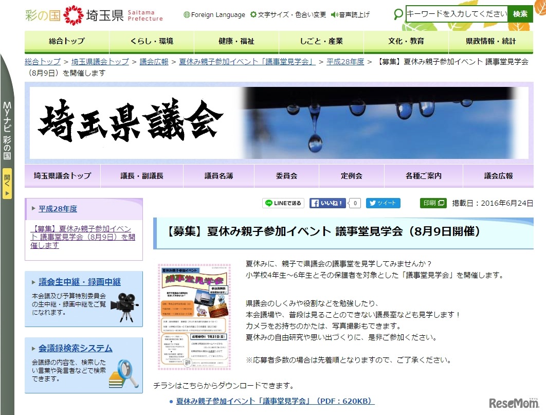 【夏休み2016】自由研究にもおすすめ、埼玉県で親子議事堂見学会8/9 2枚目の写真・画像