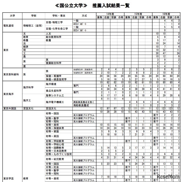 河合塾の大学入試情報サイト「Kei-Net」は6月24日、過去の入試結果データに国公私立大学の「推薦入試結果」「AO入試結果」の最新版を掲載した。大学別に2014年度から2016年度の入試結果を一覧にまとめている。