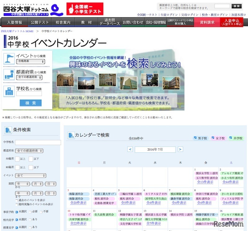 学校説明会の実施が集中する時期は9~11月だが、7月にも多くの学校が学校説明会を実施する。東京女学館が7月19日、横浜市立南高等学校附属が7月25日に説明会を行う。また、7月22日に浦和明の星女子が見学会を実施する。