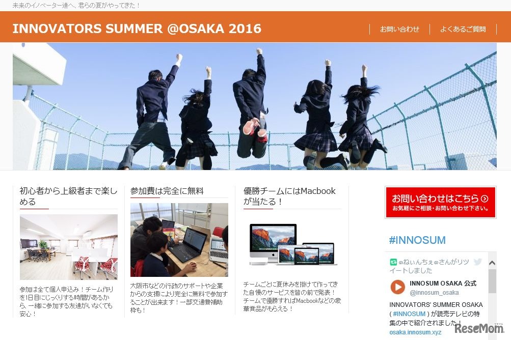 Webサービスやアプリケーションをゼロから開発する中高生向けハッカソン「INNOVATORS' SUMMER@OSAKA 2016」が、7月23日から8月21日に開催される。初日にチームを結成し、5週間をかけて企画、開発に挑む。優勝チームには豪華な賞品が用意されている。参加費無料。