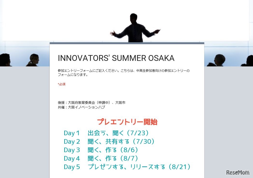 Webサービスやアプリケーションをゼロから開発する中高生向けハッカソン「INNOVATORS' SUMMER@OSAKA 2016」が、7月23日から8月21日に開催される。初日にチームを結成し、5週間をかけて企画、開発に挑む。優勝チームには豪華な賞品が用意されている。参加費無料。