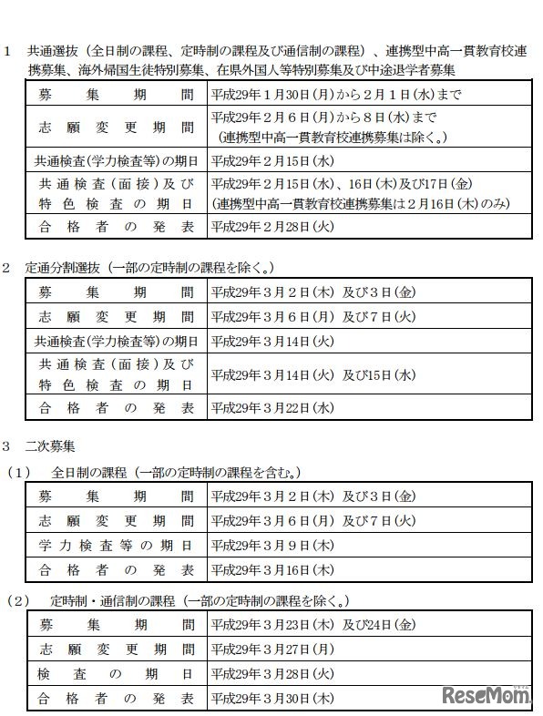 平成29年度神奈川県公立高等学校の入学者の募集および選抜日程 (撮影:稲葉九)