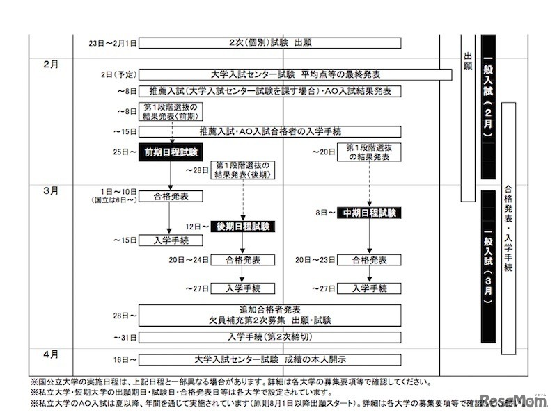 河合塾の大学入試情報サイト「Kei-Net」は、6月現在の2017年度「大学入試全体スケジュール」を掲載した。2016年7月頃に各大学が行う日程・定員・出題科目などの選抜要項発表から、2017年4月のセンター試験成績の本人開示までの日程をまとめている。