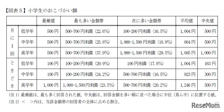 小学生のおこづかい額