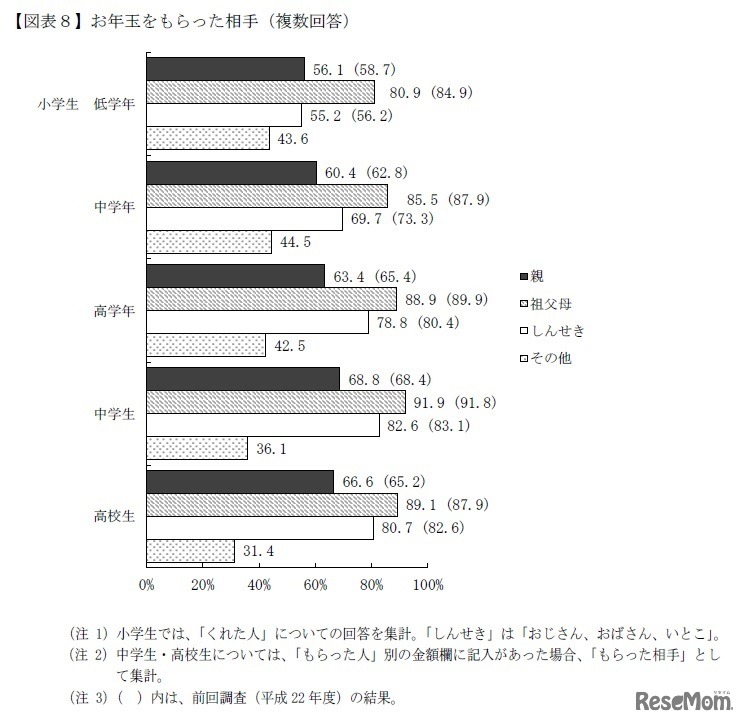 お年玉をもらった相手(複数回答)