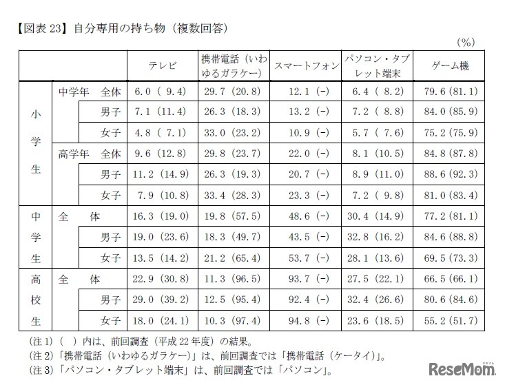 自分専用の持ち物(複数回答)