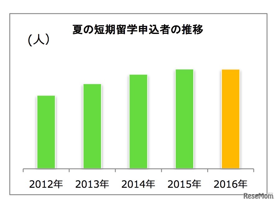 2016年夏の短期留学申込者の推移(留学ジャーナル調べ)