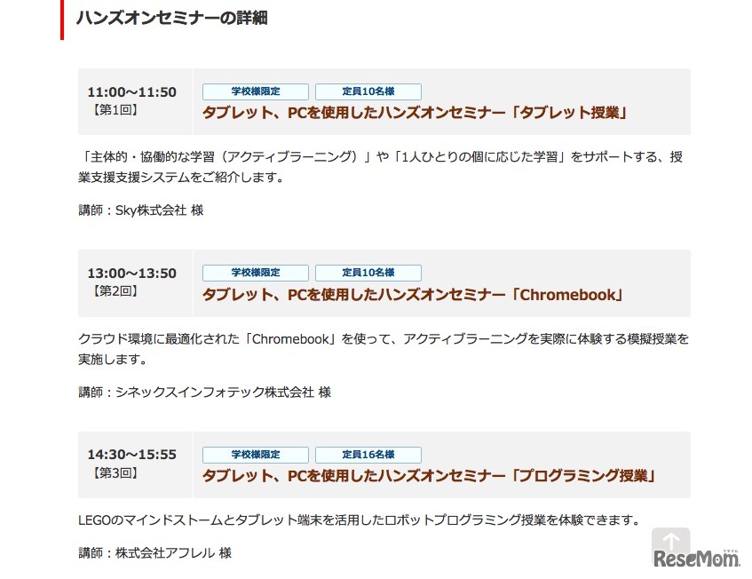 大塚商会は8月3日、学校向けのITソリューションを紹介するセミナーや参加体験、企業による展示を行う「文教ソリューションフェア2016」を東京都千代田区の大塚商会本社ビルで開催する。対象は学校教員や教育関係者。参加無料で、事前予約制。