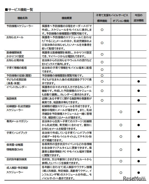 日立システムズは、「自治体向け子育て支援モバイルサービス」に妊娠期から就学までの子育てを支援する機能を新たに追加し、6月28日より販売を開始した。子どもの成長記録や施設検索など9機能を盛り込む。