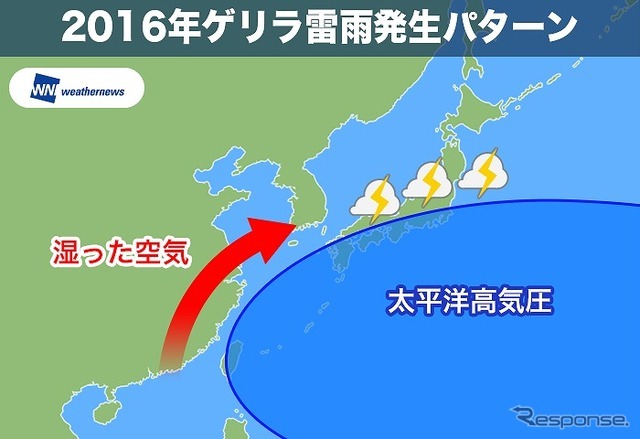 ウェザーニューズは、突発的、局地的に集中豪雨や雷をもたらす「ゲリラ雷雨」に対し、事前対策への意識を高め、被害軽減につなげるため、7~9月の「ゲリラ雷雨傾向」を発表した。