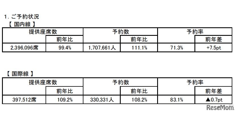 ANAとJALは8月5日、お盆時期の予約状況を発表した。帰省需要や観光需要が旺盛となり、国内線・国際線ともに予約数が前年を1割程度上回っている。ピークは8月10日-12日。