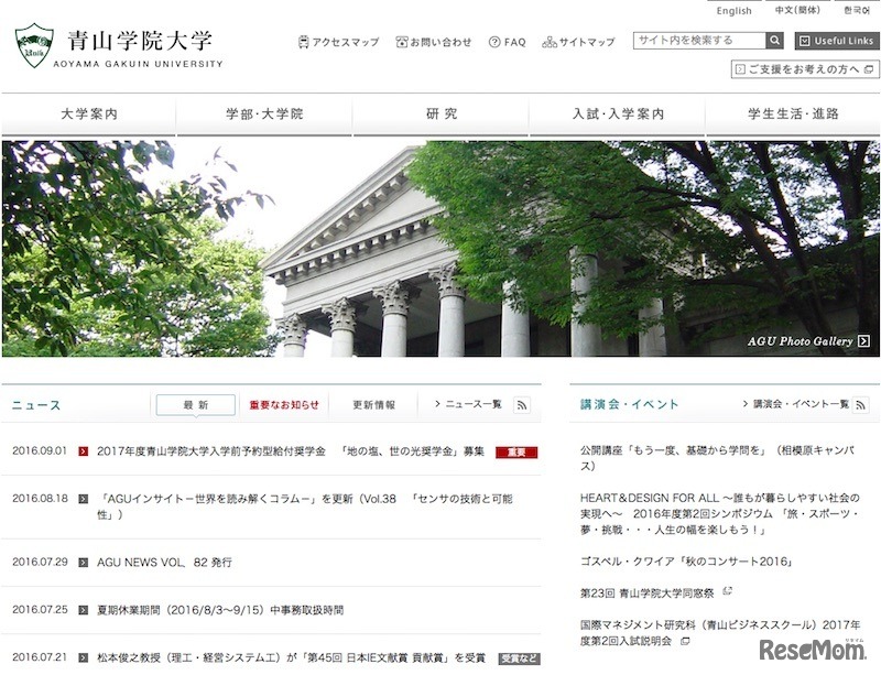 青山学院大学は9月1日、入学前予約型給付奨学金「地の塩、世の光奨学金」募集要項をWebサイトに掲載した。2017年度採用候補者数は約350名で、年額50万円を給付する。同様の入学前予約型奨学金は、早稲田大学、慶應義塾大学などの大学でも行っている。