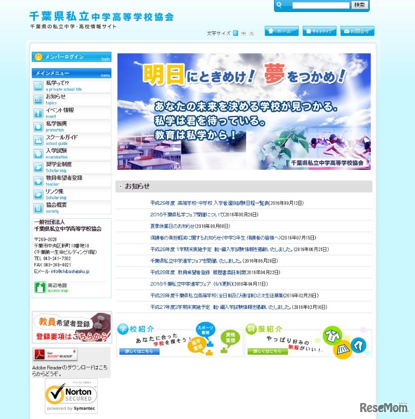 千葉県私立中学高等学校協会は9月12日、県内の私立中学校と私立高校の選抜試験日程一覧表を公開した。渋谷教育学園幕張中学校は一次試験を1月22日、市川中学校は1月20日に行う。日程一覧表は、9月18日開催の千葉県私学フェアにて配布予定。