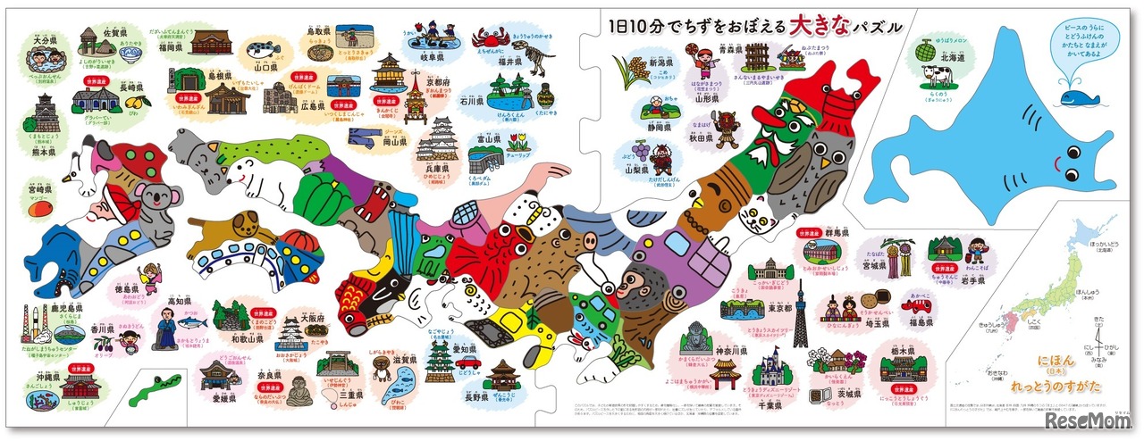 JTBパブリッシングは、ミリオンセラー作家・あきやまかぜさぶろうが考案した、日本地図暗記法「あきやまメソッド」をパズルにした「1日10分でちずをおぼえる大きなパズル」を9月23日に発売した。定価は1,300円(税別)で、全国の書店で販売している。