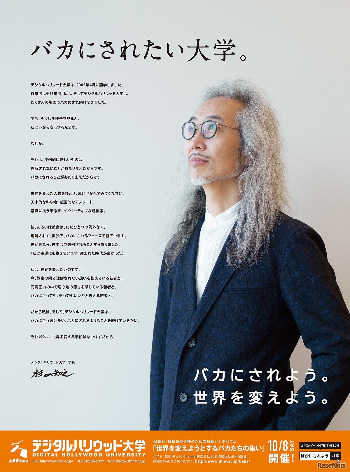 デジタルハリウッド大学は、10月8日に教育シンポジウム「世界を変えようとするバカたちの集い」を開催する。対象は、おもに今までの教育に違和感を感じ始めている保護者と教員。事前予約が必要だが、参加費は無料。