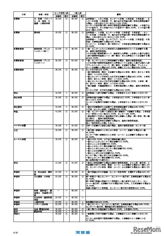 【大学受験2017】Kei-Net、私大受験料一覧を公開 2枚目の写真・画像