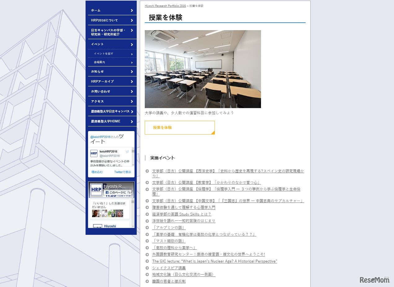 慶應義塾大学は、日吉キャンパスの研究・教育活動を知り、体験するイベント「Hiyoshi Research Portfolio 2016 (HRP2016)」を11月26日に開催する。授業やワークショップの体験、後援会・シンポジウムなども開く。入場は無料。