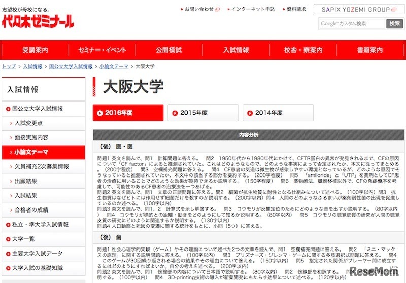 【大学受験2016】各大学小論文テーマ、代ゼミが一覧掲載 2枚目の写真・画像