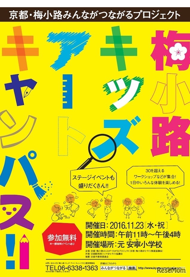 京都・梅小路みんながつながるプロジェクト(京都・梅小路まちづくり推進協議会)は11月23日、元安寧小学校で「梅小路キッズアートキャンパス」を開催する。小学生以上の子どもを対象とした30以上のワークショップなどが出展する。