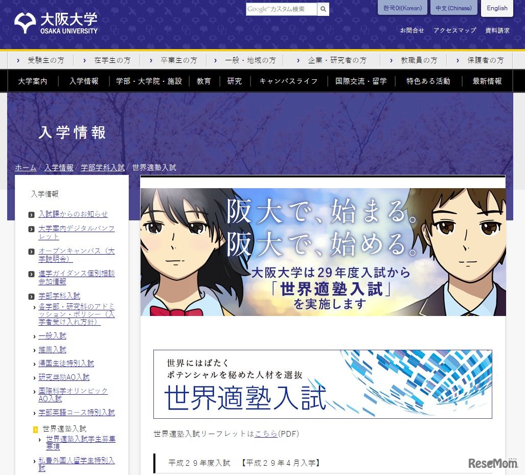 大阪大学:世界的塾入試