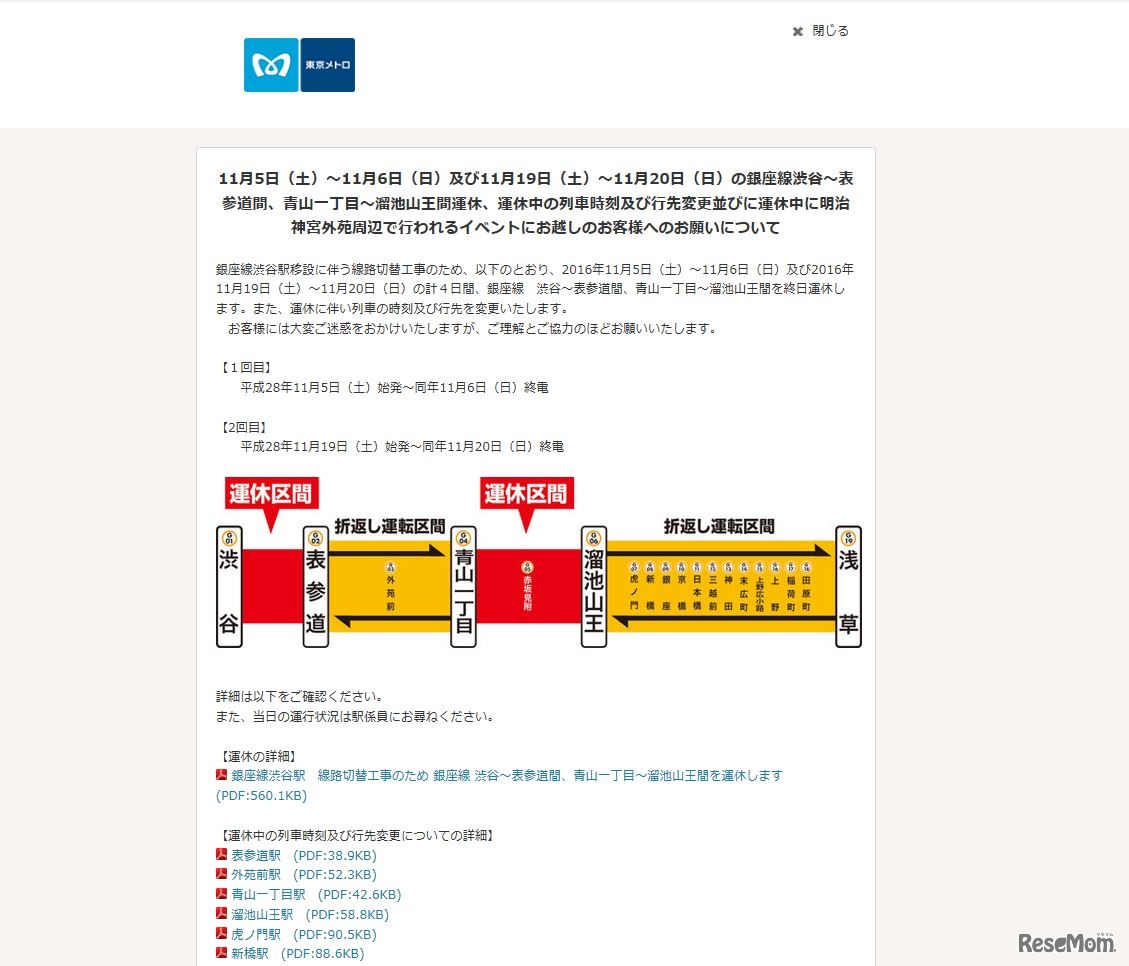 東京メトロ 銀座線地下鉄工事による一部運休のお知らせ