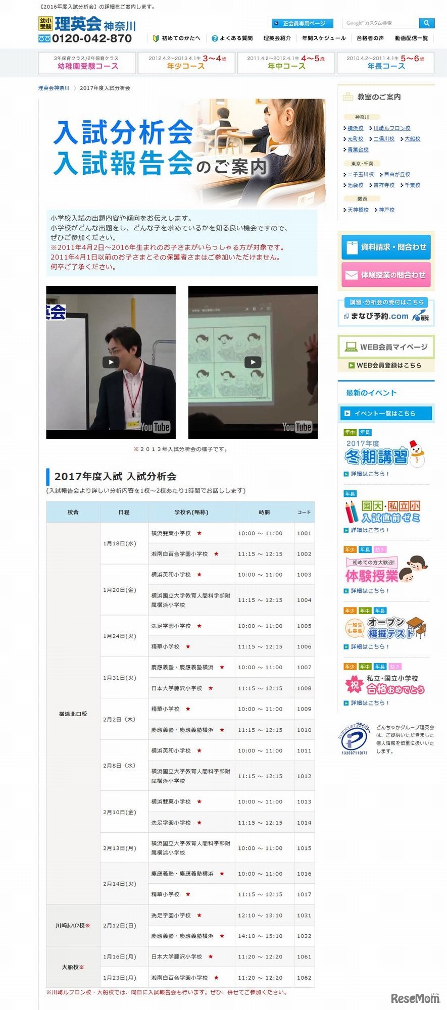 理英会は、2017年度の小学校受験についての「2017年度入試分析会」を2017年1月~2月に各校舎で開催する。対象は、2011年4月2日~2016年生まれの子どもを持つ保護者。関西地区では無料の入試分析会なども開催される。