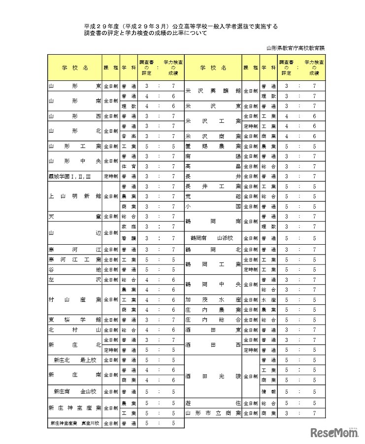 山形県教育委員会は、平成29年度(2017年度)の山形県公立高等学校入学者選抜実施要項をWebサイトで公開している。募集要項の配布は平成28年12月8日より行われ、推薦入学者選抜は2月7日、一般入学者選抜は3月10日に実施する。