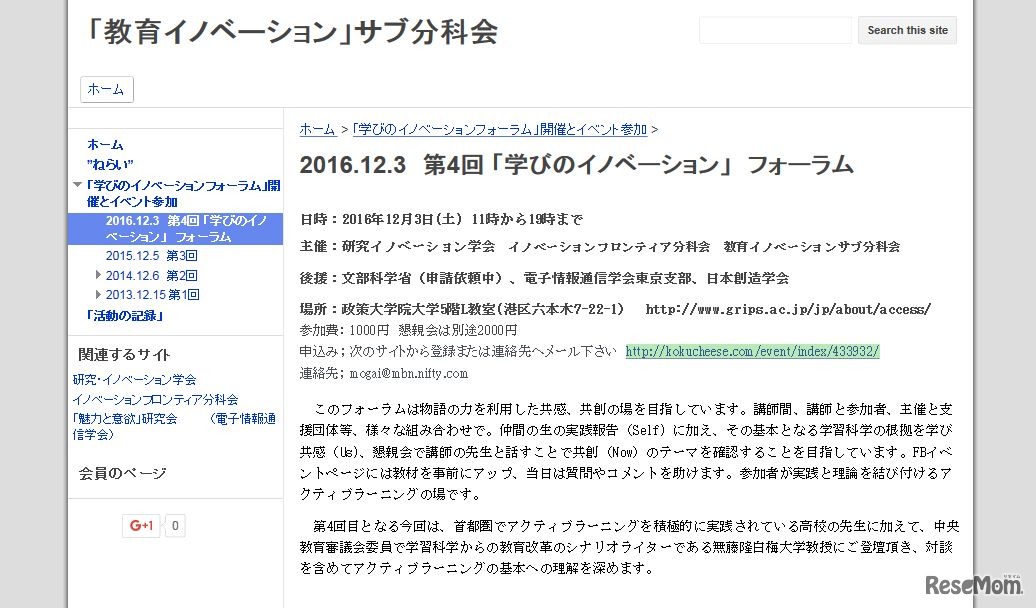 研究イノベーション学会は、12月3日に「第4回学びのイノベーションフォーラム」を東京・六本木にある政策大学院大学にて開催する。講演後は、懇親会も予定されている。参加費は1,000円、懇親会は別途2,000円(いずれも税込)。