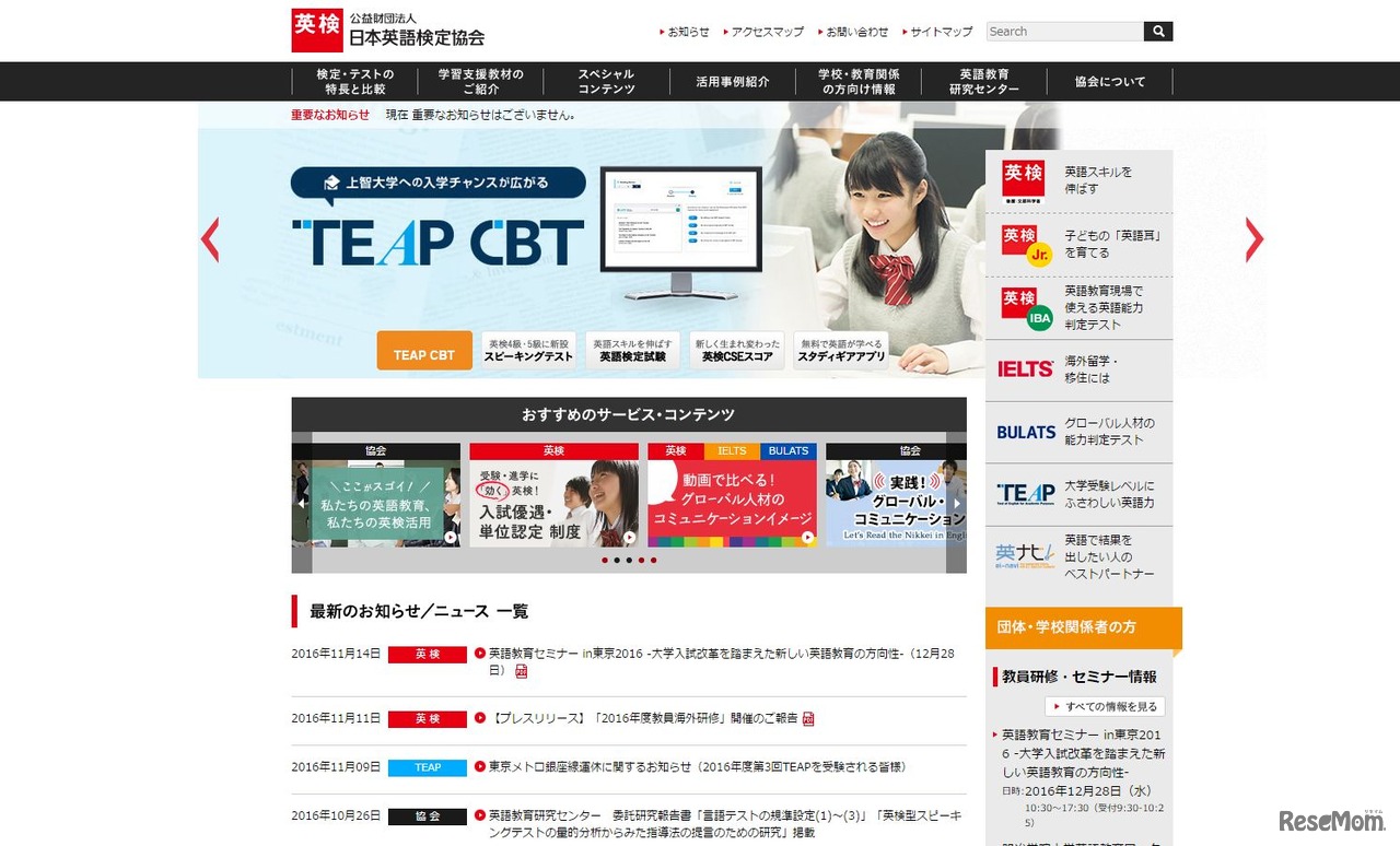 日本英語検定協会による「英語教育セミナーin東京2016」が12月28日、全国の中・高・教育委員会、大学、専門学校などで英語教育に携わる教員や学生を対象に開催される。場所は上智大学四谷キャンパス10号館講堂。定員は400名で、参加は無料。