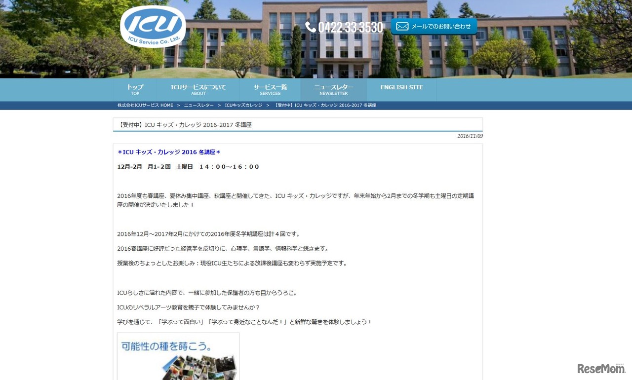 国際基督教大学(以下ICU)は、ICUキッズ・カレッジ2016冬講座を12月17日~2月11日の期間中に4回開講する。対象は、小学4年生~中学3年生の子どもとその保護者。子どもだけでも参加できる。アクティブラーニング型教育プログラム。