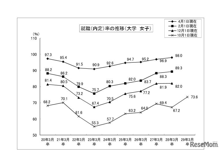 文部科学省と厚生労働省は11月18日、平成29年3月に大学等卒業予定者の就職内定状況の調査結果を発表した。大学(学部)の就職内定率は71.2%で、前年同期の4.7ポイント増。男女別では女子学生が男子学生より4ポイント以上高い73.6%だった。